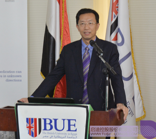 首先,BUE大學(xué)董事會主席Mohamed Farid Khamis先生對啟迪之星(開羅)的最終落地表示祝賀,并在致辭中用兩個(gè)“最”來形容大學(xué)科技園的意義以及與啟迪的合作:建設(shè)和運(yùn)營大學(xué)科技園及孵化器是當(dāng)下BUE大學(xué)對埃及社會進(jìn)步和經(jīng)濟(jì)發(fā)展能做出的最大貢獻(xiàn);中國的啟迪控股是BUE建設(shè)運(yùn)營大學(xué)科技園和孵化器最理想的合作伙伴。Mr. Farid Khamis Khamis表示,在啟迪的支持和幫助下,BUE大學(xué)有信心將大學(xué)科技園建設(shè)運(yùn)營為埃及乃至北非最成功、最有影響力的科技園。