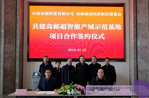 1月28日,啟迪金服投資有限公司與揚州高郵市城南經濟新區管委會就共建超智能產城示范基地和共同搭建城市科創服務體系在蘇州啟迪時尚科技城簽署合作協議。啟迪控股副總裁胡波和高郵市城南經濟新區管委會副主任王長海出席共同見證,啟迪金服總經理李小忠和城南經濟新區投資促進局局長王生幫代表雙方簽約。