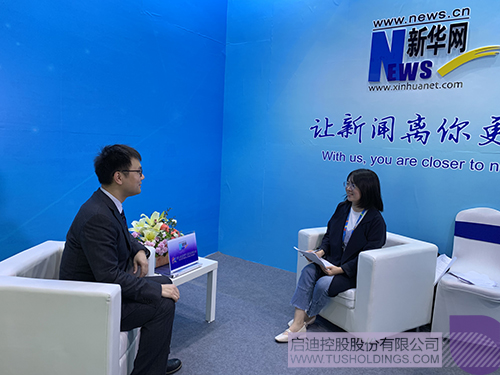 國家網信辦、廣西壯族自治區領導蒞臨啟迪控股展區參觀考察,啟迪控股高級副總裁王鼎博士(右一)陪同