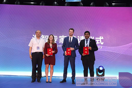 菏澤市科協黨組書記、副主席朱留芝為聯合國開發計劃署區域青年項目協調官Savinda Ranathunga、法國駐華大使館科技處政策顧問Sosthènes Dmitra?inovi?,清華大學蘇世民書院研究學者Kiera Ariel Peltz頒發“海智專家”聘書。