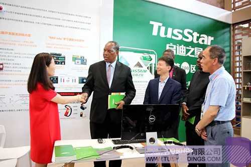 在參觀展區(qū)之前,卡布迪外長在貴賓室與啟迪之星團(tuán)隊親切會談。團(tuán)隊向卡布迪外長詳細(xì)介紹了清華科技園、啟迪控股和啟迪之星的發(fā)展歷程以及啟迪之星打造的全球創(chuàng)新孵化網(wǎng)絡(luò)情況,并分享了啟迪之星在埃及開羅創(chuàng)建非洲第一個孵化基地的案例。卡布迪外長對啟迪之星的孵化模式和所取得的成就表示極大興趣和贊賞,并代表坦桑尼亞達(dá)累斯薩拉姆大學(xué)向啟迪之星發(fā)出誠摯的合作邀請,希望啟迪之星和達(dá)累斯薩拉姆大學(xué)盡早啟動合作交流,歡迎啟迪之星的創(chuàng)新高鐵駛?cè)胩股D醽啞?br />
