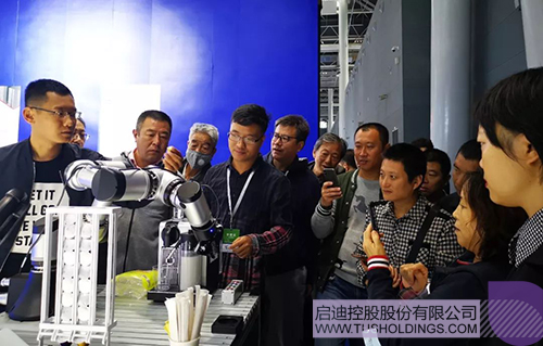 打奶泡、咖啡沖泡、送到指定位置,集團(tuán)模塊化協(xié)作6軸機(jī)器人咖啡工作站一整套流暢的動(dòng)作讓參觀者對(duì)6軸機(jī)器人的實(shí)際應(yīng)用有了更具象化的了解。