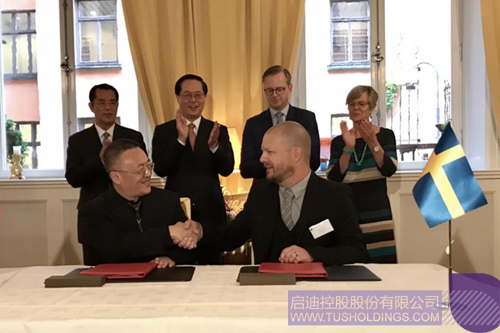 2017年8月30日至31日,浙江省委書記、省人大常委會主任車俊率團在瑞典進行考察訪問。啟迪控股旗下浙江機器人產業集團作為浙江企業代表,于31日上午在省委書記車俊與瑞典創新科技大臣丹貝爾、中國駐瑞典大使桂從友、瑞典駐滬總領事林立的共同見證下,與瑞典浣貝爾激光自動化有限公司在瑞典首相府簽約,成立中瑞合資公司并落戶浙江。浙江機器人產業集團總經理朱春榮與瑞典浣貝尓自動化有限公司創始人兼首席執行官華山(Magnus Stjernberg)代表雙方簽署協議。