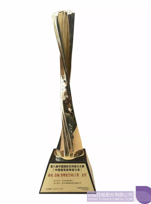 “中國建筑裝飾設計大獎”售樓處空間工程類金獎證書及獎杯