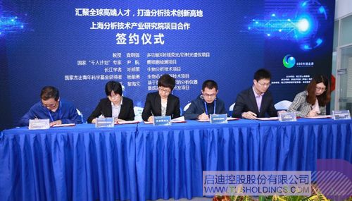 會上,美國國家科學(xué)院院士Cooks,中國工程院院士莊松林,中國科學(xué)院院士譚蔚泓,松江區(qū)委副書記劉其龍,啟迪控股總裁袁桅,研究院院長歐陽證教授等共同啟動光幕,宣布上海分析技術(shù)產(chǎn)業(yè)研究院正式成立。