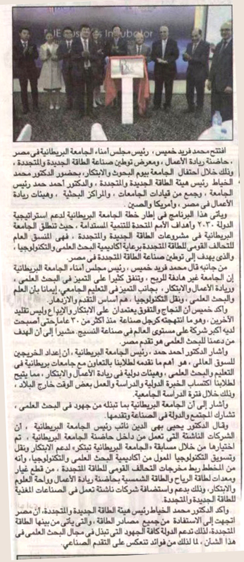 啟迪之星丨埃及《金字塔報》:大不列顛大學啟動創業孵化器打印