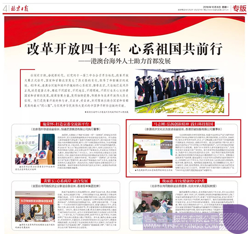 10月8日,北京日報發表改革開放40周年專題文章《改革開放四十年 心系祖國共前行 ——港澳臺海外人士助力首都發展 》,文中報道京澳經濟文化交流促進會副會長、啟迪控股董事、啟迪金控董事長馬志剛作為港澳臺愛國企業家代表,多年來積極投身京港澳創新交流合作,助力華人青年創新創業。以下為相關報道內容節選。