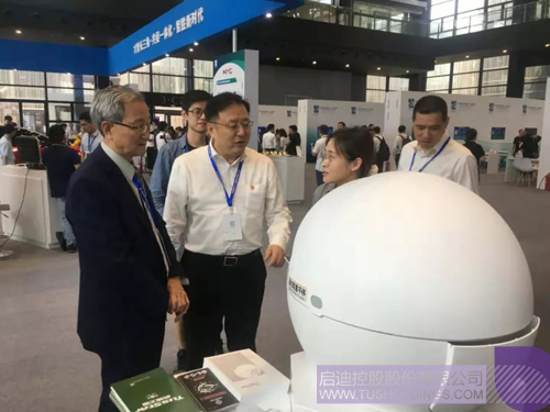 清華大學原黨委副書記胡顯章、浙江清華長三角研究院院長王濤,參觀啟迪之星展位。