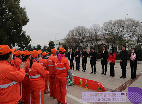 當(dāng)天,啟迪控股黨委副書記、常務(wù)副總裁趙東一行還親臨啟迪數(shù)字環(huán)衛(wèi)華東區(qū)域蚌埠項目觀看了作業(yè)情況,并向堅守在工作崗位上辛勤勞作、可敬可愛的一線環(huán)衛(wèi)工人們致以新春慰問。