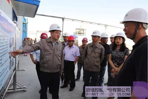 在藍科鋰業公司廠區,報道團一行考察了由啟迪新材料集團子公司啟迪清源建設及運營的青海鹽湖膜法鎂鋰分離項目,該項目一期在2016年3月開工建設, 10月13日全部投入試運行,可實現年產碳酸鋰1萬噸。當報道團得知該項目團隊在任務重、工期短、工藝復雜的情況下,通過“5+2”、“白加黑”的“百日會戰”,高效高質地完成了項目建設時,紛紛對該項目團隊奮戰高原、追求卓越的精神表示贊賞。