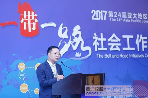 在主題發言中,王濟武立足香港啟迪、云南啟迪、廣西啟迪等啟迪控股在“一帶一路”上的橋頭堡案例,系統闡釋了啟迪如何以科技創新為紐帶,推動“一帶一路”社會工作發展。他表示,“一帶一路”是世界經濟最重要的戰場,中國推動“一帶一路”建設,不是輸出過剩產能,而是攜手相關國家走科技創新、產業升級、共同發展帶的道路。其中,科技創新是重要的推動力量,也是“一帶一路”的發展重點。“一帶一路”作為科技創新主要的應用場景,其社會基礎體系正發生著顛覆性變化,互聯網、大數據等新興技術正為社會治理和社會工作提供強大支撐。他強調,啟迪控股作為我國最大的科技服務集團和中國社工聯合會長期成員單位,在‘一帶一路’將持續通過科技創新合作,帶動沿線經濟的發展,促進社會共同進步。