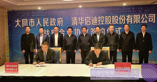 在雙方領導的見證下,啟迪控股高級副總裁、啟迪清潔能源董事長兼總裁文輝與大同市人民政府副市長尉連生代表雙方簽署戰略合作協議,為共同打造“中國第一個資源型城市轉型典范”奠定基礎。