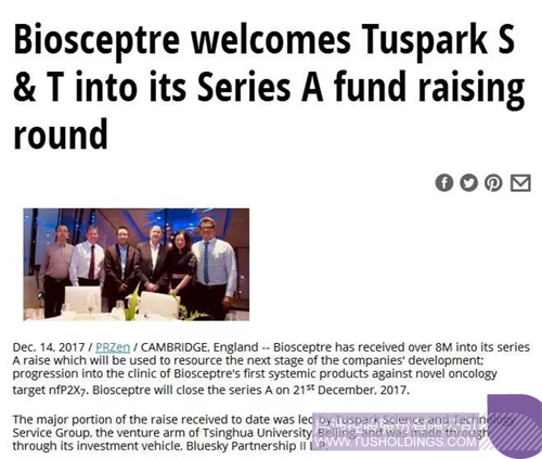 Kltv報道:2017年12月14日,英格蘭Biosceptre已獲得了由中國啟迪科服集團主導的投資,并通過投資工具Bluesky Partnership II LP 完成交易。