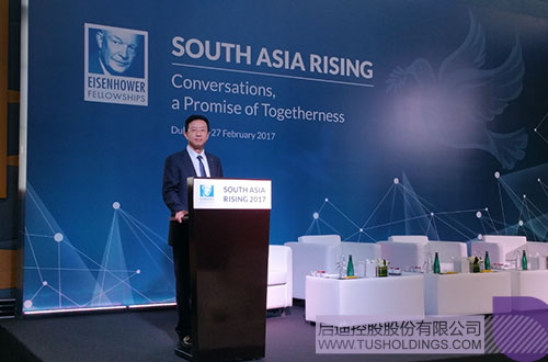 為了讓世界各國,特別是來自南亞地區國家的代表更深入地了解中國政府所推行的“一帶一路”倡議,美國艾森豪威爾基金會出資邀請啟迪控股常務副總裁陳鴻波赴迪拜出席主題為“對話,團結的意愿”的“南亞崛起”峰會,并特別安排其在開幕式后全體會議上第一個發言。來自美國、加拿大、澳大利亞、阿聯酋、納米比亞、南非、坦桑尼亞、幾內亞、肯尼亞、英國、緬甸、愛爾蘭、孟加拉以及南亞六國等40多個國家的政府、學校、研究機構以及產業界的代表近200人出席了會議。巴基斯坦前總統穆沙拉夫、艾森豪威爾基金會主席等重要嘉賓出席開幕式。